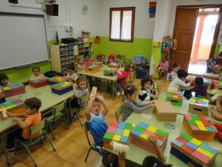 L’activitat consisteix en ficar dins la capsa que els infants han decorat